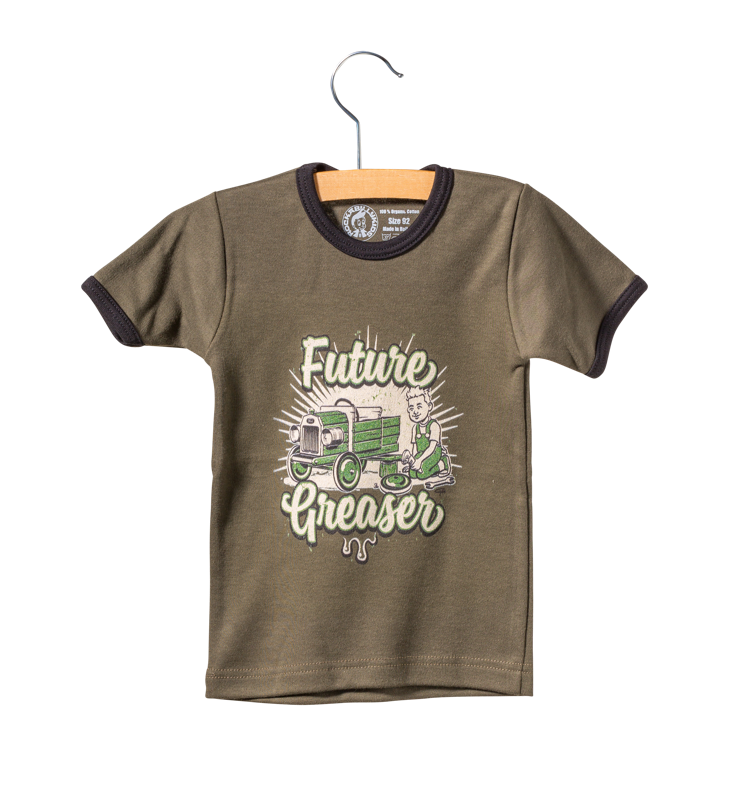 Rockabillykids shirt, army / zwart met originele illustratie van Ger Peters.