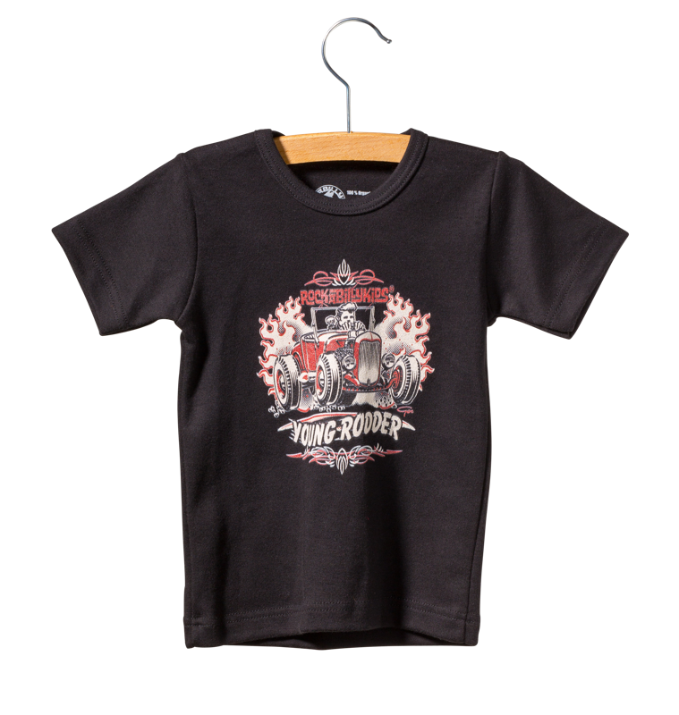 Rockabillykids shirt, zwart met originele illustratie van Ger Peters.