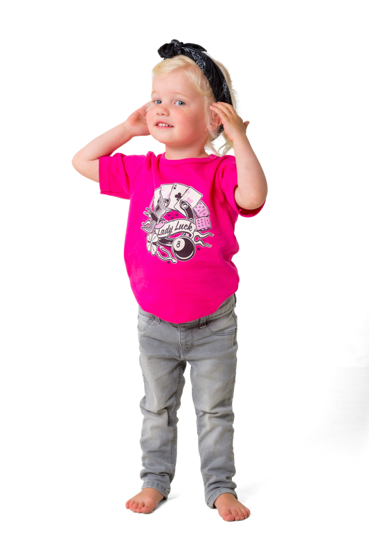 Rockabillykids shirt, roze met originele illustratie van Ger Peters.
